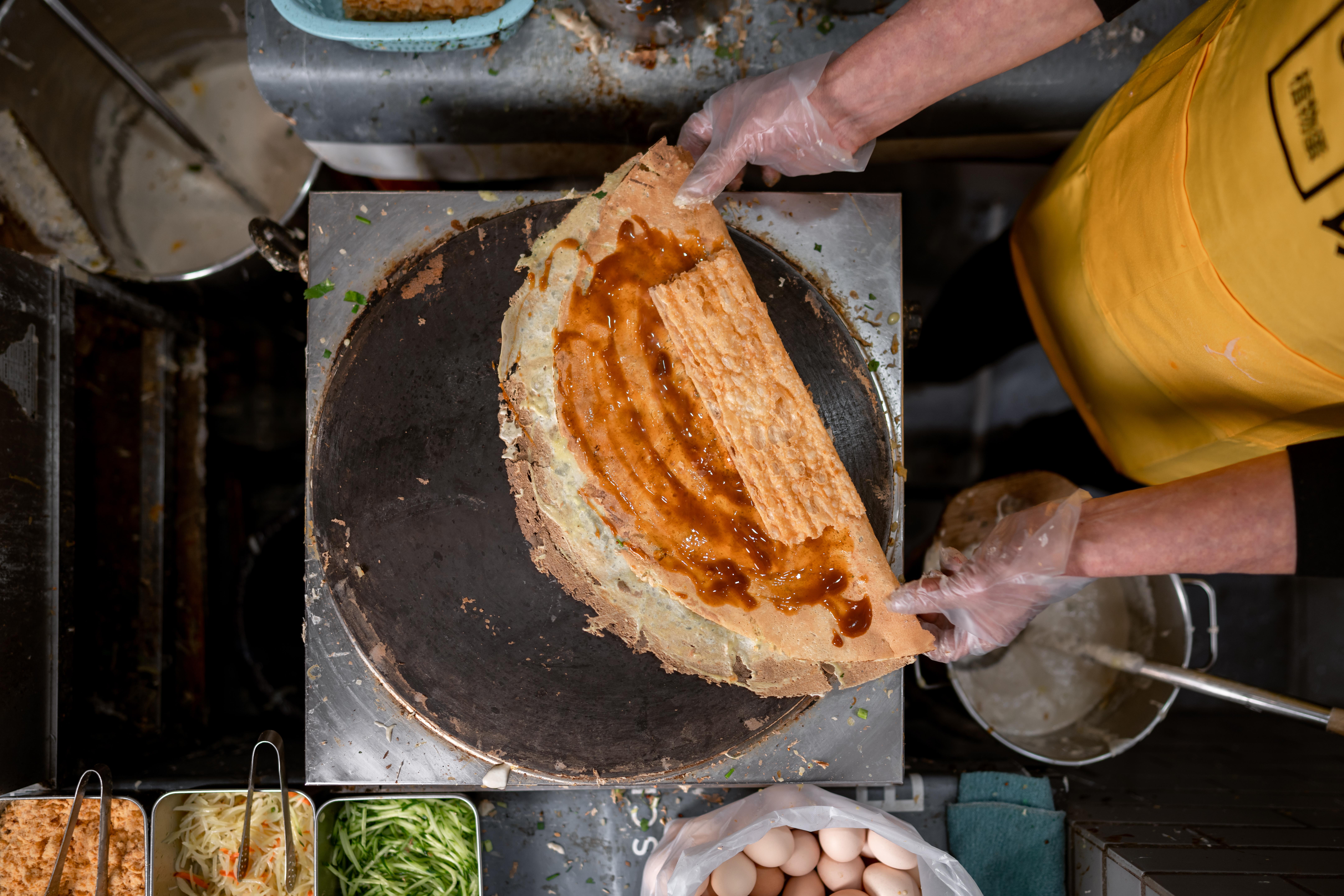 Eat Just 皆⻝得希望能让每⼀位消费者都能尝试其100%植物造JUST Egg植物蛋产品,因此我们将JUST Egg植物蛋产品融⼊国⼈最爱的早餐/⼩吃——煎饼中。集结本地最具烟⽕⽓的街头煎饼商户,向⼤众市⺠提供100%纯植物性煎饼,同时创建线上煎饼地图供消费者发现离他们最近的JUST Egg植物蛋煎饼。